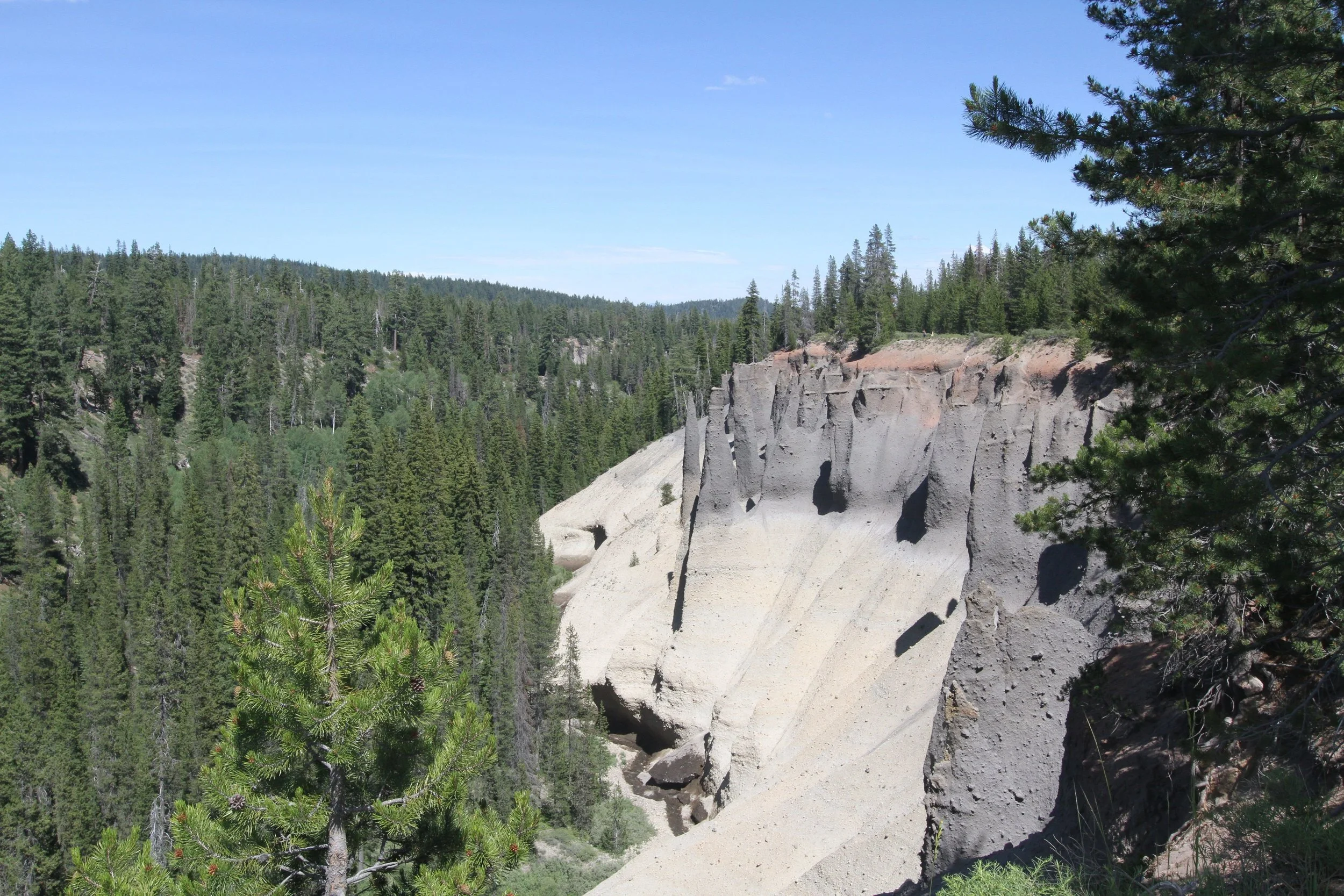 And, lest you think Crater Lake is only about water, here is an awesome photo of needle-like formations of rock, called fossil fumaroles, projecting from the Sand Creek Canyon floor.